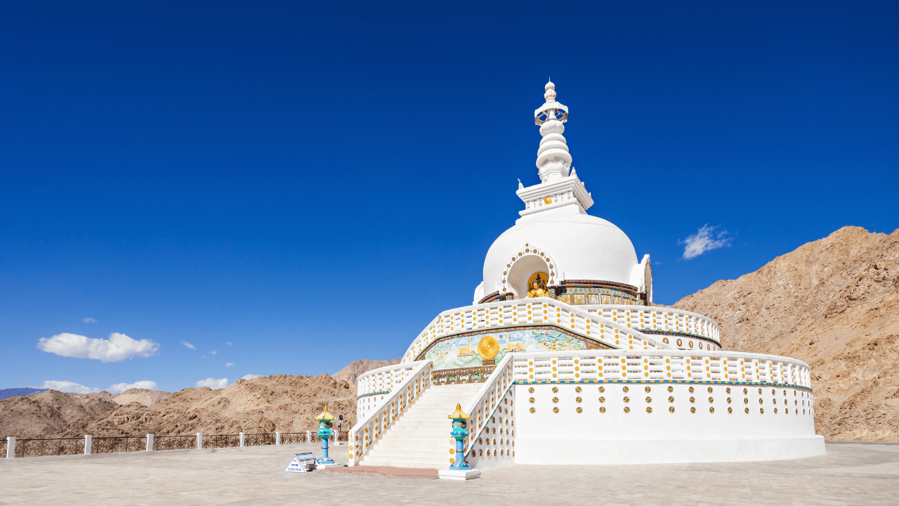An iconic white-domed stupa built by Japanese monks to promote world peace. It offers panoramic views of Leh.